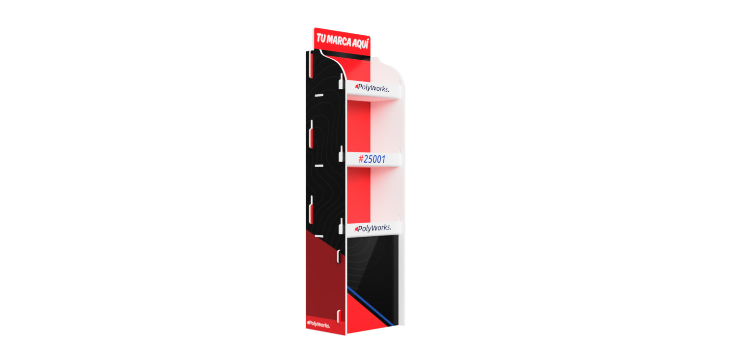 Floor Display with Multiple Shelves. A tall polypropylene floor display designed for maximum product visibility. Lightweight, durable, and ideal for promotional items in retail spaces.